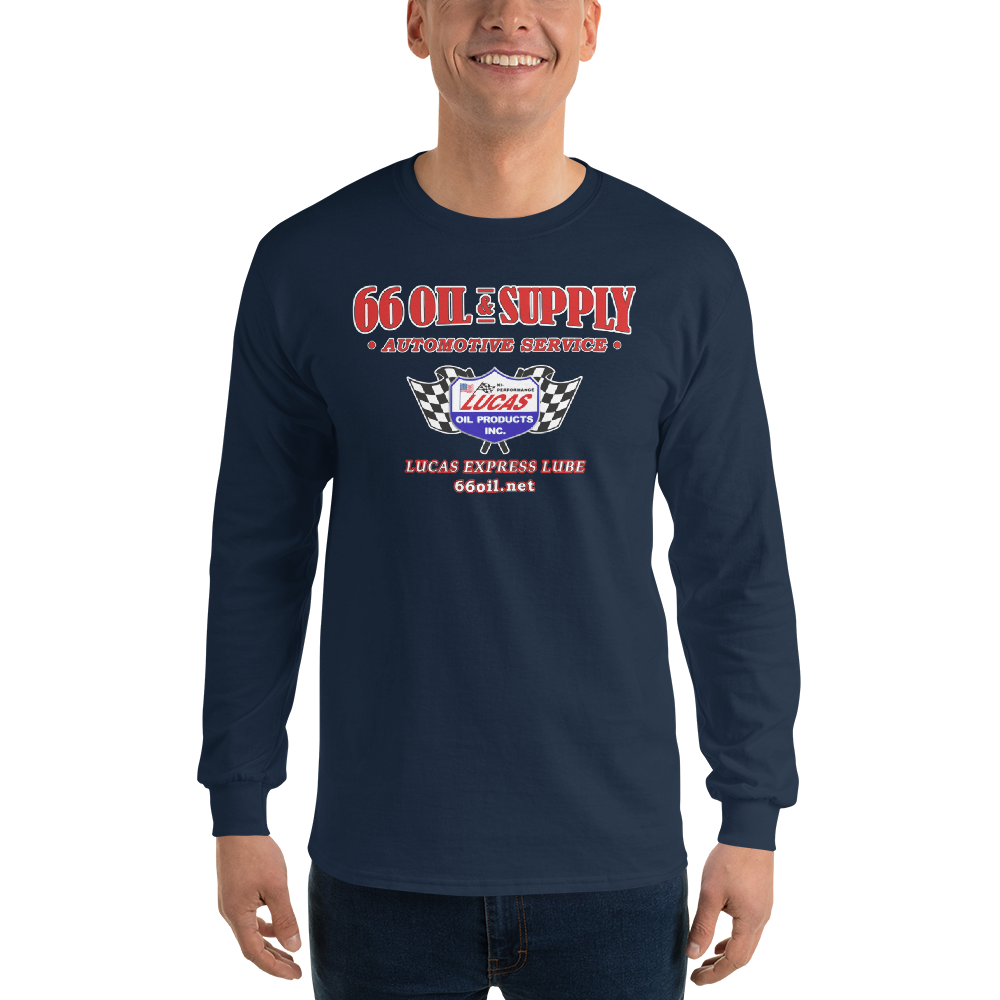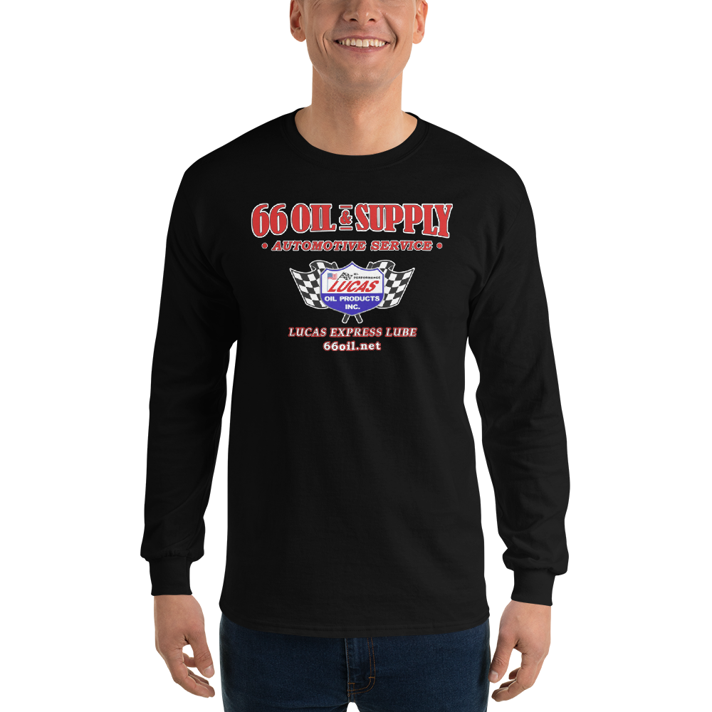 With its classic and regular fit, this Men's Gildan 2400 Long Sleeve Shirt with the 66 Oil & Supply Co. print on the front & back is a true wardrobe essential. It'll look great on its own or layered and will be perfect for when you want to be exclusive!