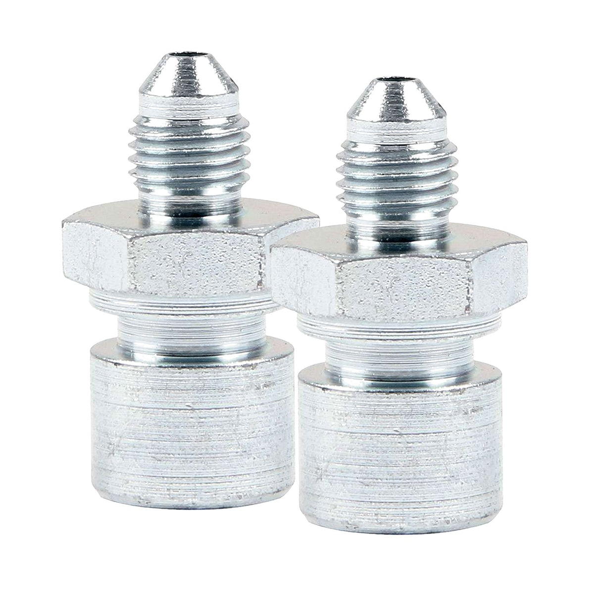Steel adapter fittings provide a bulkhead style connection to AN lines that can be mounted directly to the chassis by using tabs or brackets and retainer clips. Fittings fit in a 5/8" hole and are sold in a pack of 2.