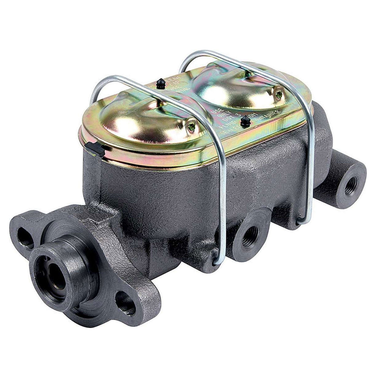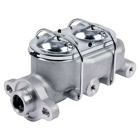 Dual reservoir master cylinders have 1" bores and outlet ports on both sides for easy plumbing and installation. Popular master cylinders are used with disc/disc and disc/drum manual or power brake applications. Slotted mounting holes on 3-1/4" centers work well with Allstar brake boosters.