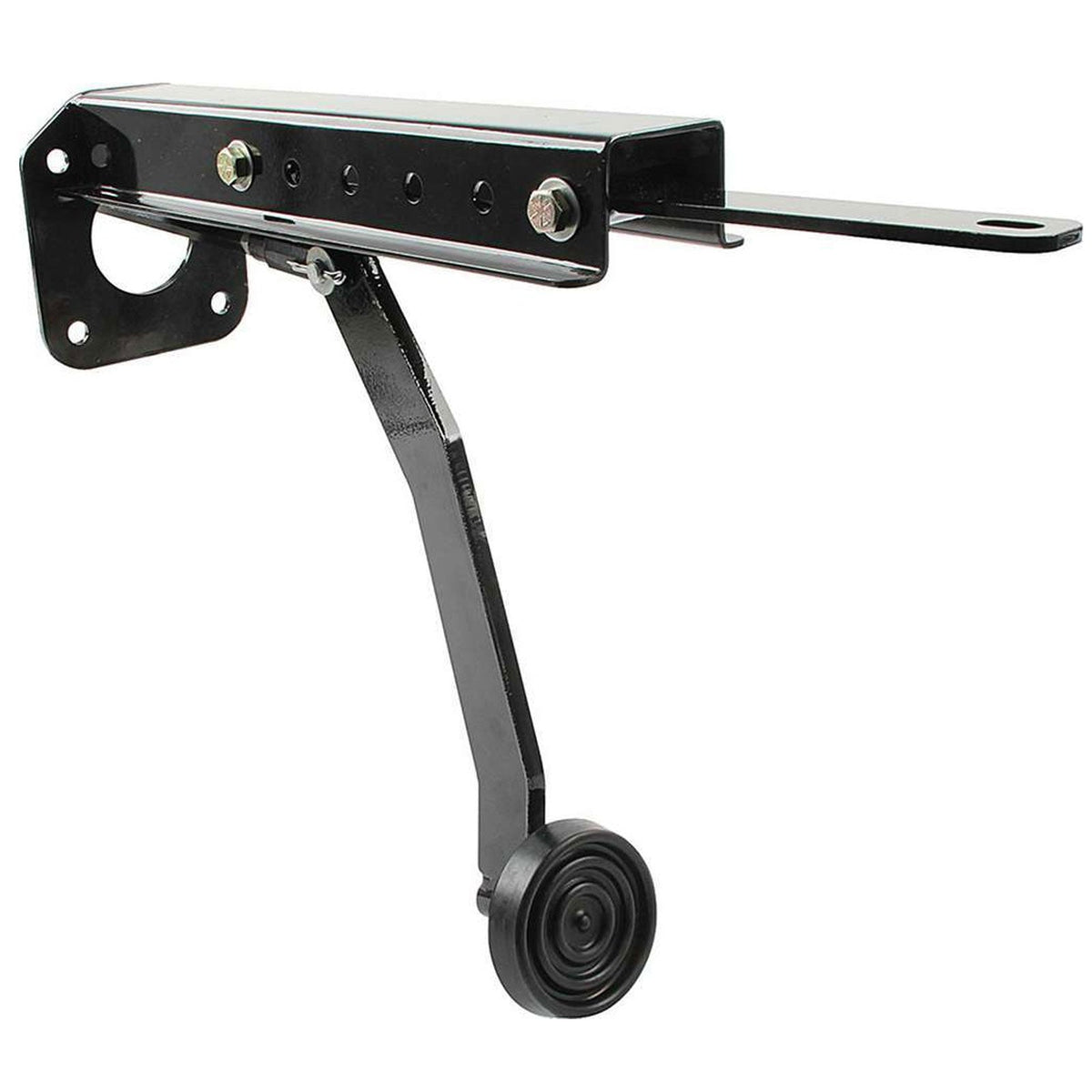 Universal brake pedal assembly includes everything to install a new hanging brake pedal and is ideal when replacing older style floor mounted brake pedal with under floor master cylinder, to a more convenient firewall location. Firewall mounted bracket is pre-drilled to accept Allstar power brake boosters or most manual brake master cylinders and includes a dash support bracket. Multiple pedal mounting holes allow arm to be positioned 5-7/8" to 11-7/8" from firewall mounting plate in 1-1/2" increments for desired pedal placement. Included 3/8"-24 clevis and threaded pushrod may be cut and re-threaded as needed depending on final pedal location.