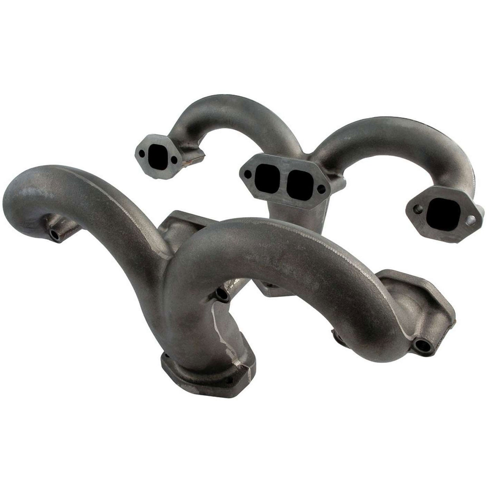 “Ram Horn” manifolds have increased exhaust flow over traditional manifolds and added steering shaft clearance. Ideal for street rods and classes requiring cast iron exhaust manifolds. Sold in pairs. Note: Gasket and hardware for collector are not included.
